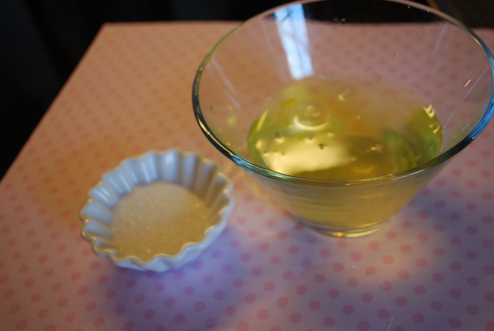 Så måles sukkeret og eggehvitene opp og has i en mixer